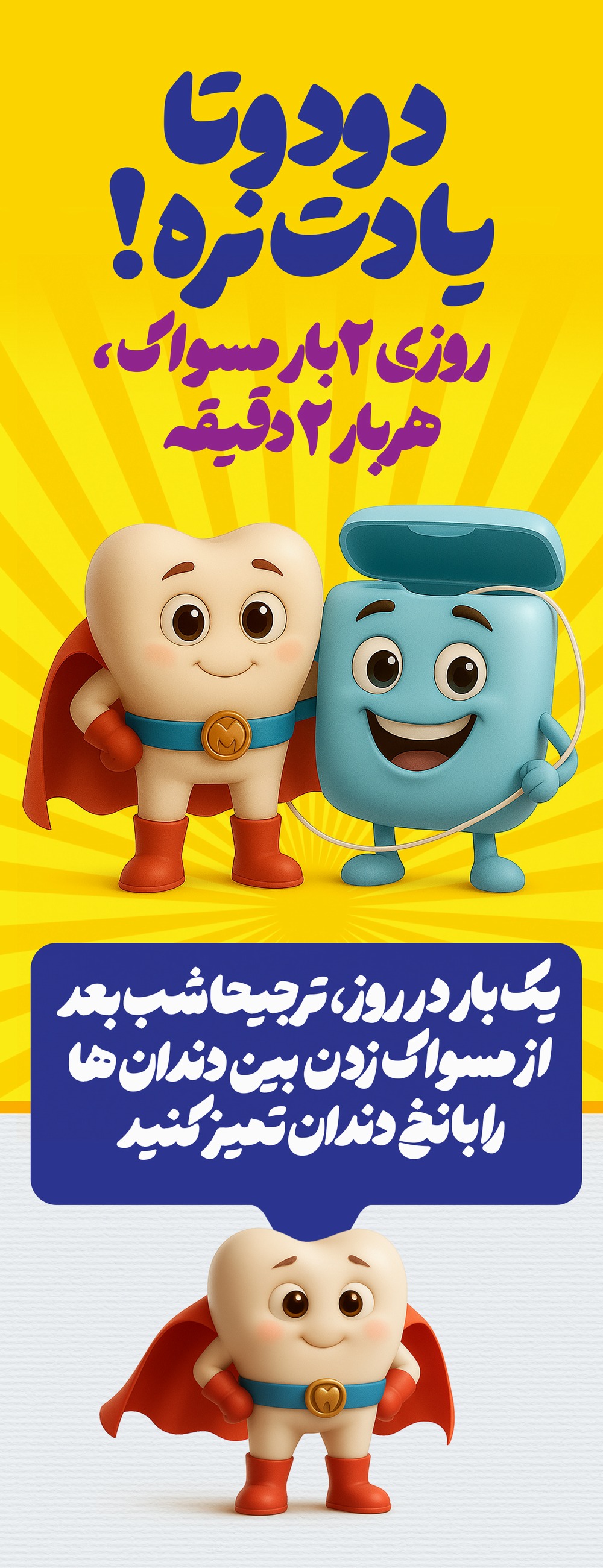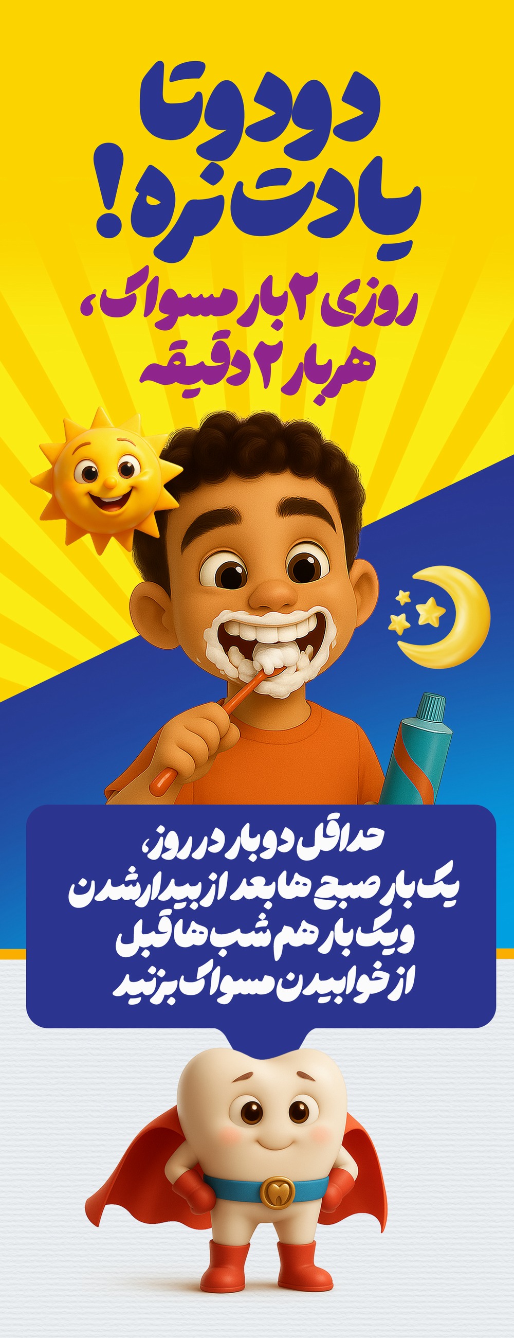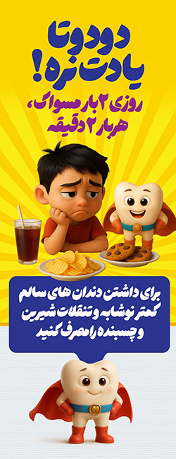 - بعد از مسواک زدن دهان را نشویید. فقط آب دهان را بیرون بریزید.
