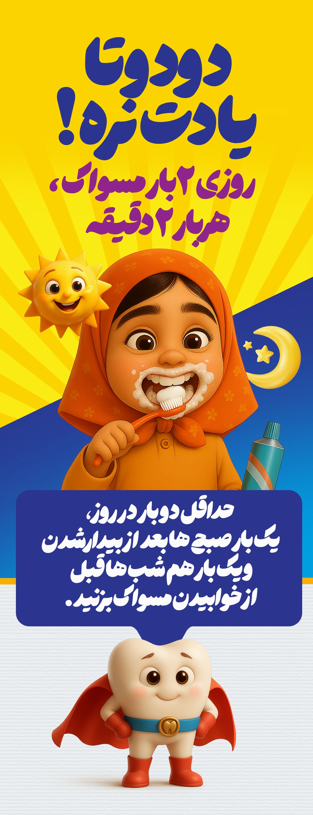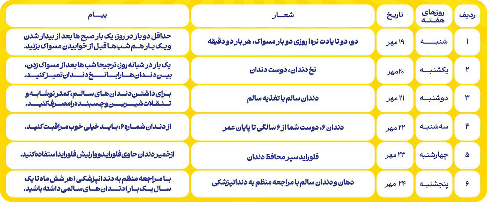 در همین راستا از تاریخ 19 مهر 1404 به مدت یک هفته با تمرکز بر سلامت دهان دانش آموزان، پویش ملی «دو تا دو یادت نره! روزی دوبار مسواک، هر بار دو دقیقه» طراحی شده است.