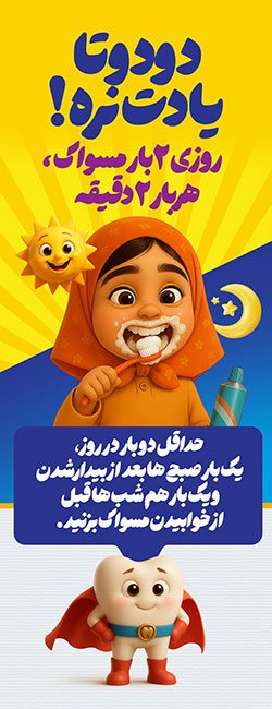 - تا سن 7 سال مسواک زدن کودکان باید توسط والدین انجام شود. بعد از آن تا سن 12 سالگی مسواک زدن کودکان باید تحت نظارت والدین باشد.