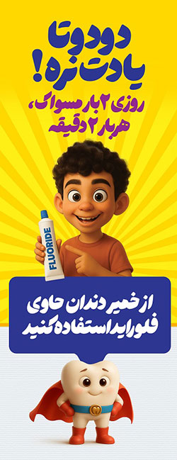 - برای کودکان زیر 3 سال در هر بار مسواک زدن از خمیردندان حاوی فلوراید به اندازه یک دانه برنج روی مسواک قرار داده شود.
