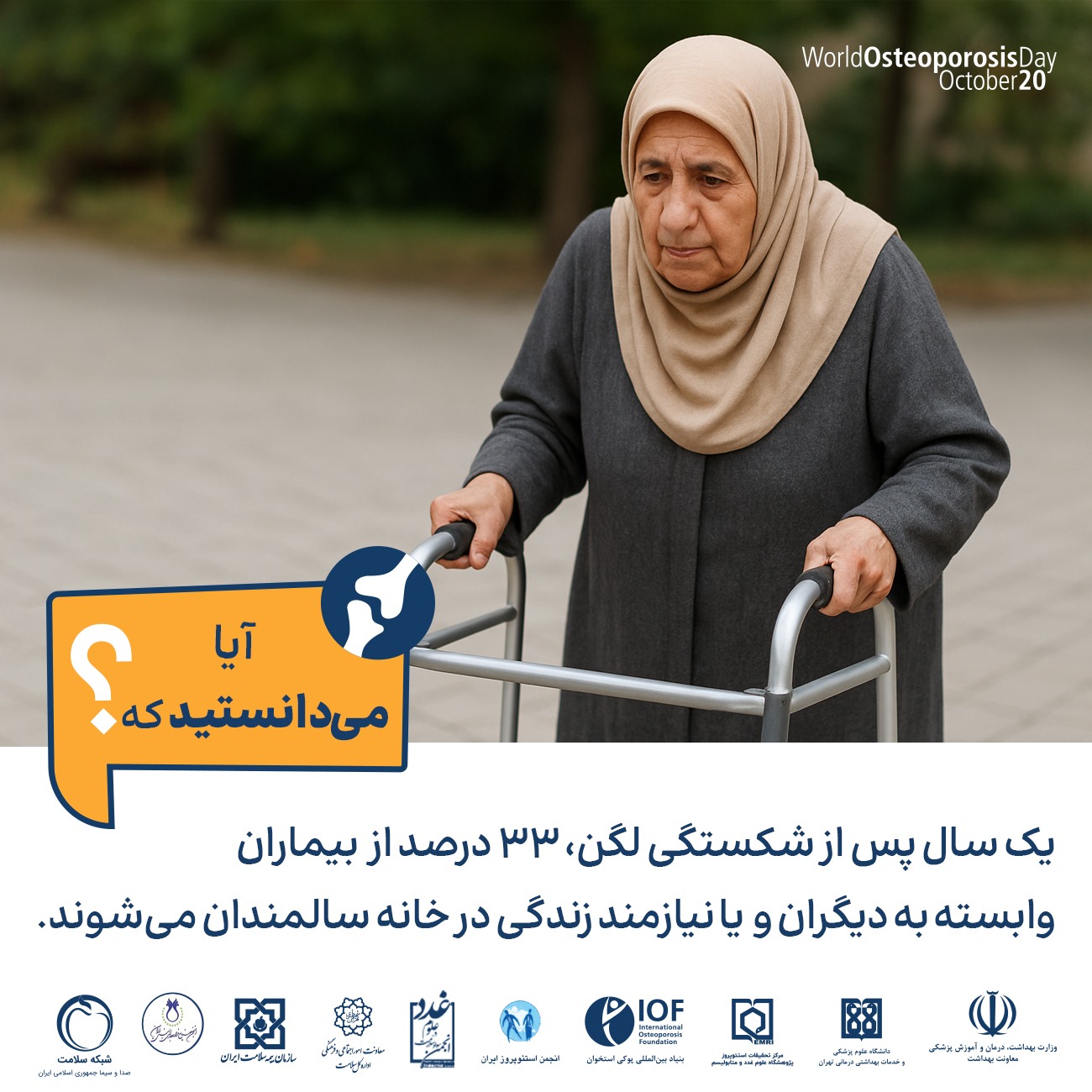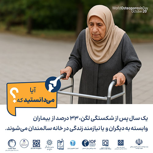 - 50درصد افرادی که یک شکستگی ناشی از پوکی استخوان دارند، دچار شکستگی دیگری هم می شوند.