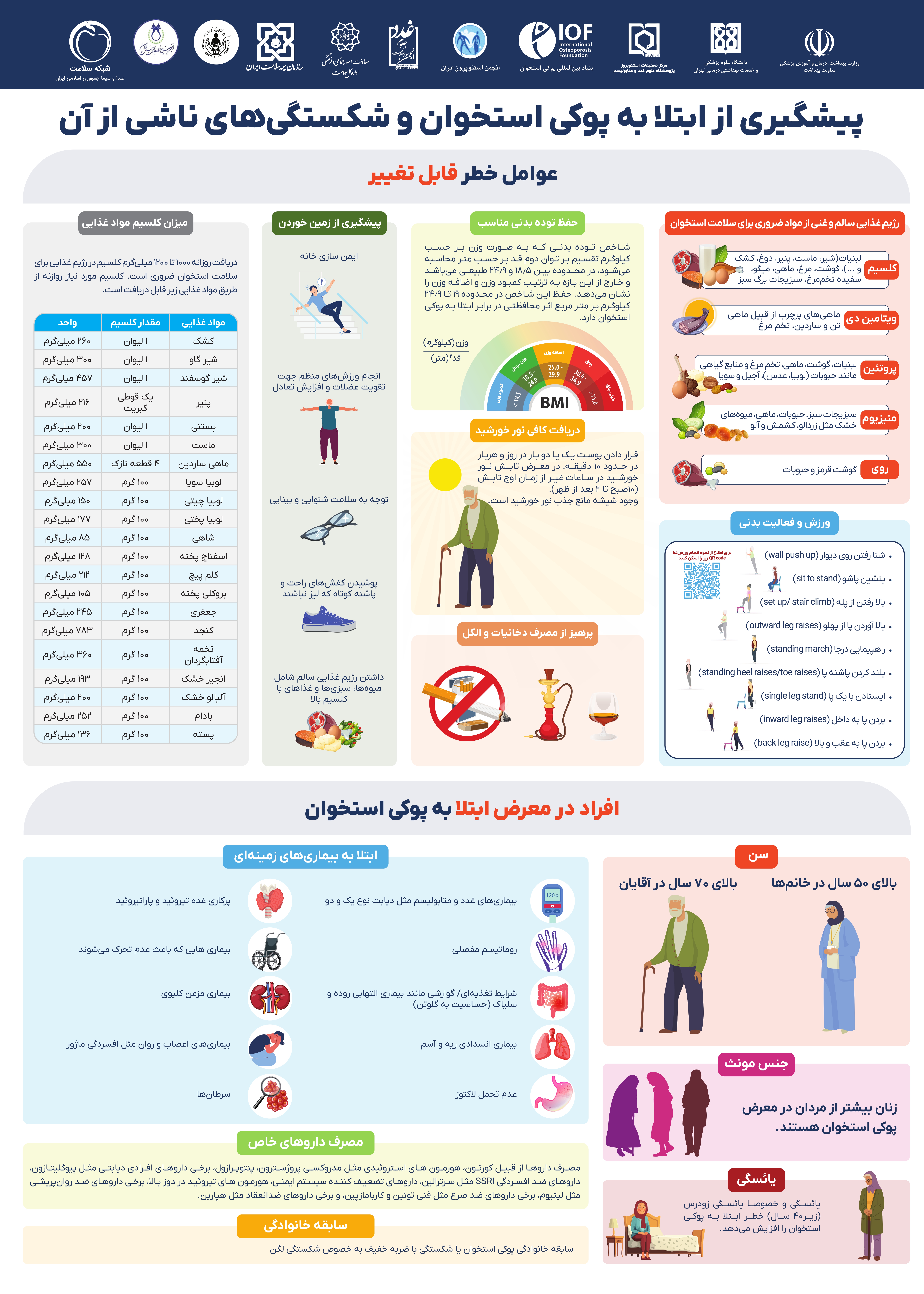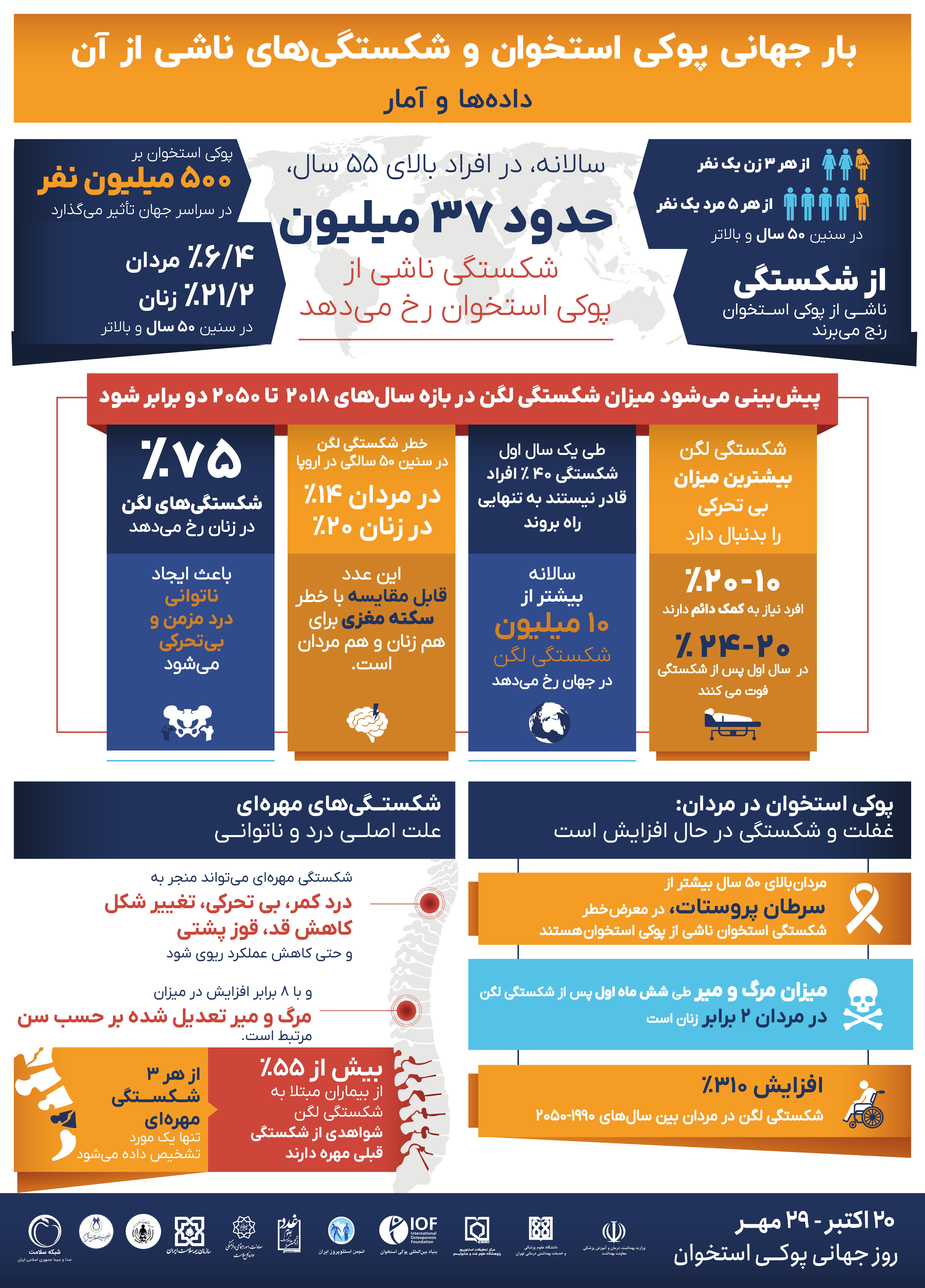 - از هر سه زن بالای50سال یک نفر و از هر 5 مرد بالای 50سال یک نفر شکستگی ناشی از پوکی استخوان را تجربه می کنند.