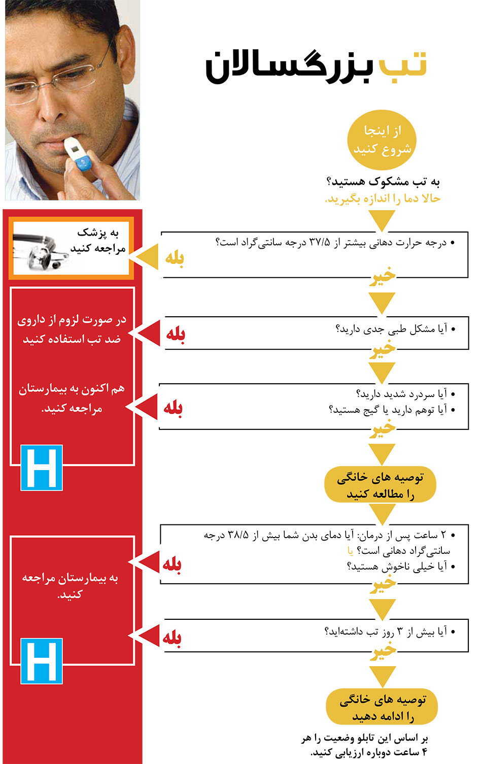 کودکان کمتر از 3ماه، بیمارانی که تحت شیمی درمانی قرار می گیرند، مبتلایان به بیماری های جدی و افرادی که به تازگی تحت جراحی قرار گرفته اند باید برای هرگونه تب به پزشک مراجعه کنند.