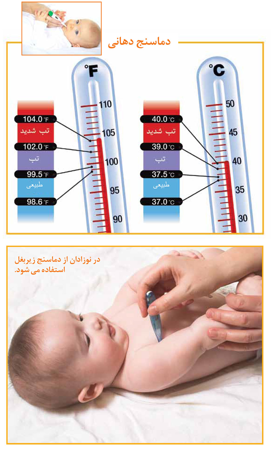 - سپس دماسنج را درآورده و عدد را بخوانید.