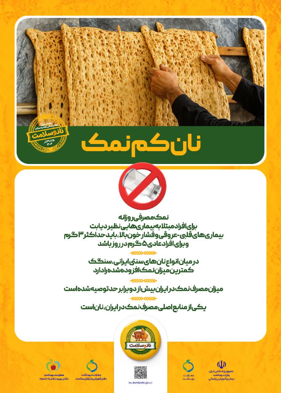 - یکی از منابع مهم دریافت نمک ایرانی ها از نان مصرفی روزانه است پس نان های کم نمک را برای خرید امتحان کنید.