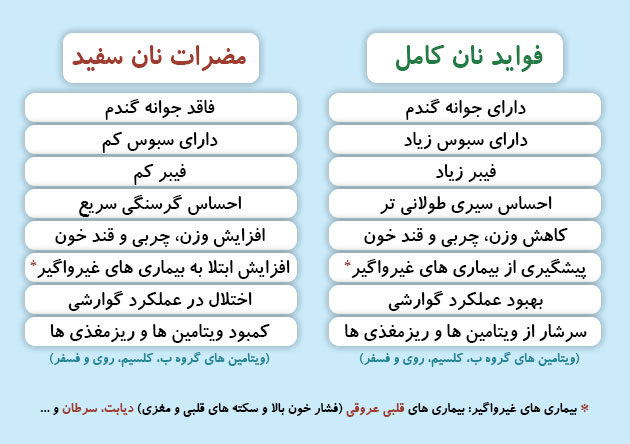 - مصرف نان کامل با کنترل چربی خون، فشارخون، قندخون، وزن و التهاب، خطر بیماریهای قلبی و عروقی را کاهش میدهد.