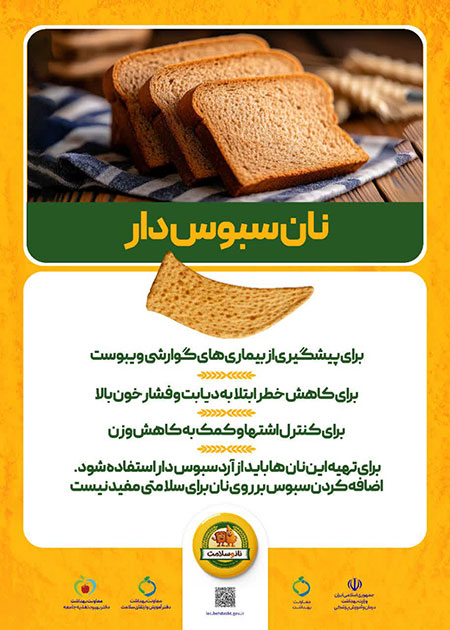 - نان سبوس دار تامین کننده بخشی از ویتامین های گروه B، انرژی و فیبر است.