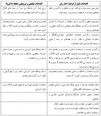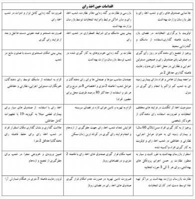به گزارش وبدا به نقل از پایگاه اطلاع رسانی و پایش آثار اقتصادی کرونا، ستاد انتخابات کشور با همکاری وزارت بهداشت پروتکل های بهداشتی برای برگزاری انتخابات در شرایط وجود بیماری کرونا را تهیه کرده است تا سلامت رای دهندگان و مجریان انتخابات حفظ شود.