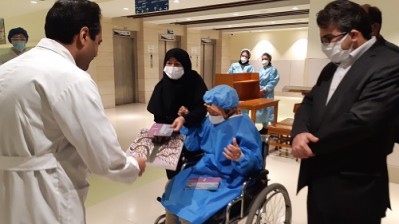 دختر کم توان جسمی حرکتی مشهدی آثار نقاشی خود را به پرستاران و پزشکان بیمارستان امام رضا (ع) اهدا کرد.