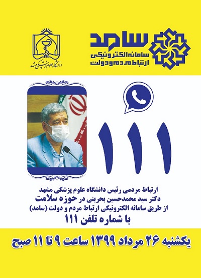 رئیس دانشگاه علوم پزشکی مشهد از طریق سامانه تلفنی ۱۱۱ سامد به سوالات مردم مردم پاسخ میدهد.